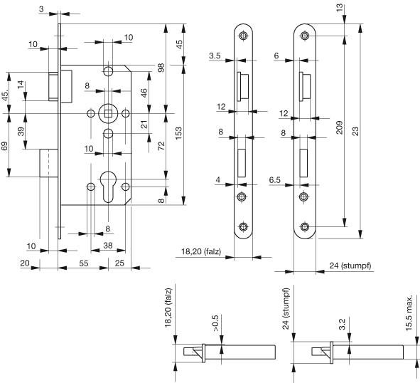 Einsteckschloss für gefälzte Türen