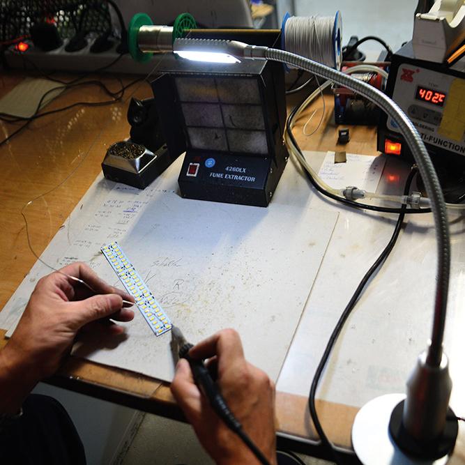 Ausführung: Lampenkopf aus Aluminium mit einer satinierten Acrylschutzglasscheibe vor dem LED-Leuchtchip. Reflexionsarme, gleichmäßige Ausleuchtung sowie blend- und flackerfrei. Ein- und Ausschalter direkt am Lampenfuß. Mit Magnetsockel zur direkten Montage an der Maschine. Staub- und spritzwassergeschützt bis Netzteilkupplung.