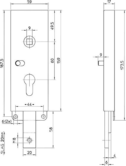 Produktinformationen "Bever Kipptorschloss, 8002, o.Schild, gefedert, Profilzylinder gelocht, VK 9,E60 verz."