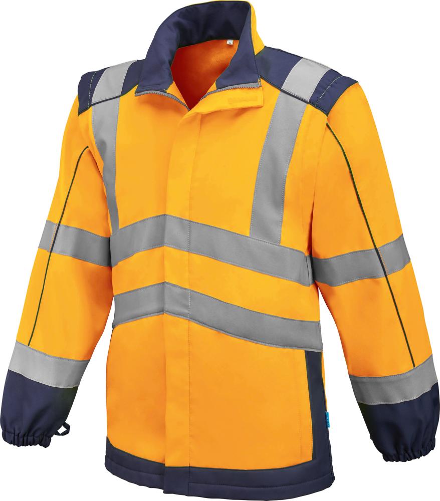 Ausführung: Reißverschluss unter Klettbandpatte Diverse Taschenvariationen Abnehmbare Ärmel Gummizug am Ärmelende Gesteppte Nähte Fest eingenähter Windfang in der Frontpartie 2-Lagen bonded Softshell Zulassung/Norm: EN ISO 20471:2013, Klasse 3 mit Ärmeln, Klasse 2 ohne Ärmel EN 14058:2004 EN ISO 13688:2013 Material: 100 % Polyester, ca. 250 g/m² 100 % Polyester Fleece an der Innenseite Größen: S3XL