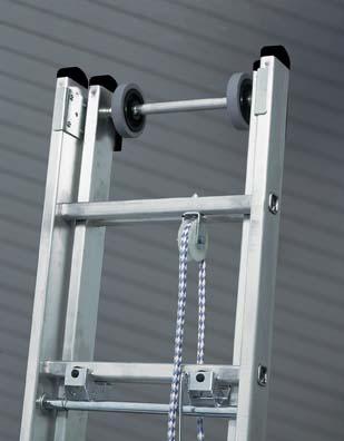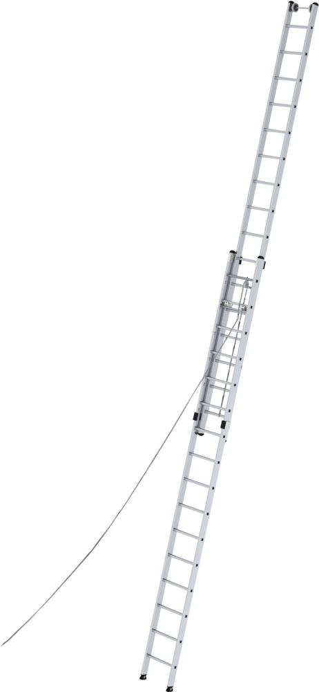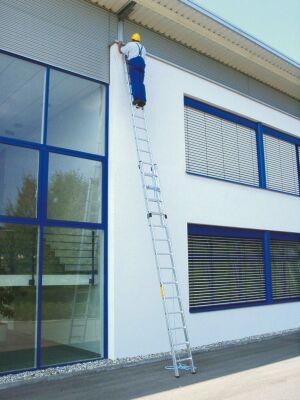 Aluminium-Seilzugleiter, 2-teilig Besonders standsicherDurch nivello®-Leiterschuhe, stabile Rechteckholme, korrosionsbeständige Beschläge mit Gleitführung, dauerhaft verbördelte, geriffelte Vierkantsprossen (30x30 mm) und Steckhaken mit automatisch einrastender Abhebesicherung. Sprossenweise höhenverstellbarVerstellung über integriertes Kunststoffseil. Flexibel einsetzbarBeide Leiterteile auch einzeln als Anlegeleiter verwendbar, Oberleiter mit Höhenverstellung von Sprosse zu Sprosse durch Kunststoffseil. IndustrieausführungBauart-geprüft, entspricht DIN EN 131, BetrSichV, TRBS 2121, DGUV Information 208-016 bzw. 208-017 und geltendem DGUV Regelwerk.