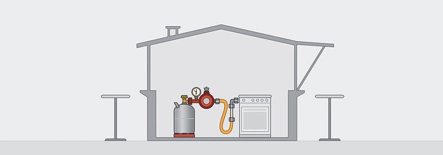 Hinweis: Beim Anschluss von Verbrauchsgeräten mit einem Gesamtanschlusswert bis 1,5 kg/h, kann auf den Einsatz eines Gasströmungswächters verzichtet werden.