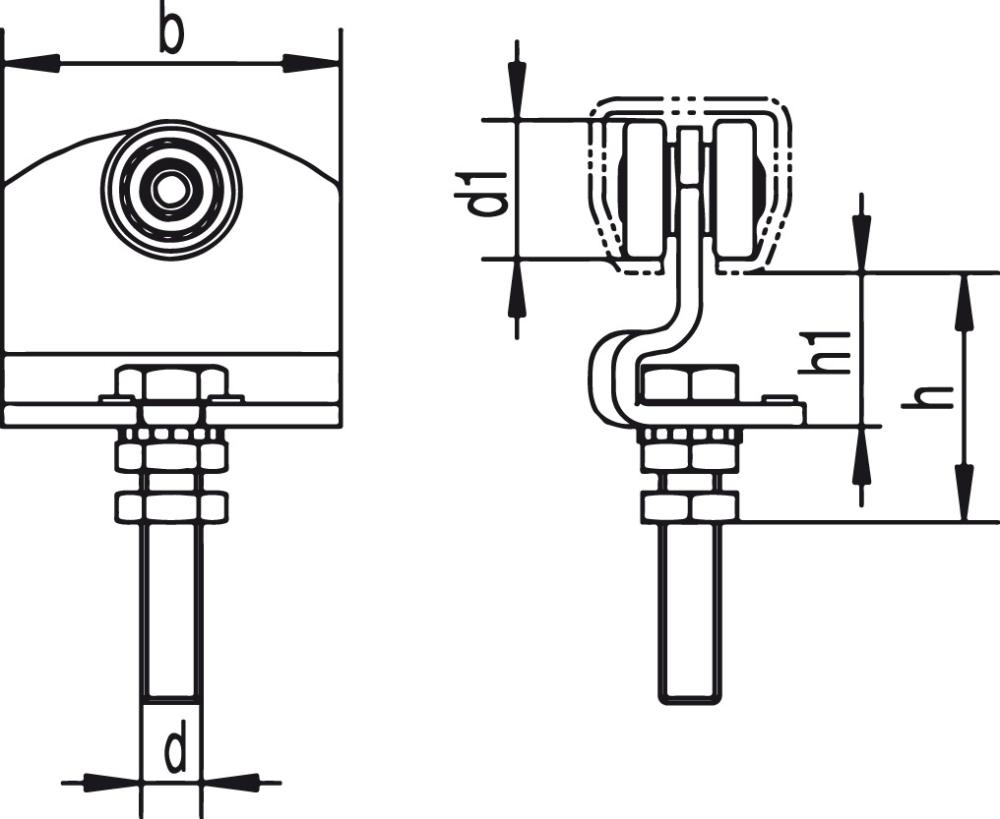 Helm 490 Rollapparat M16x70, höhenverstellbar