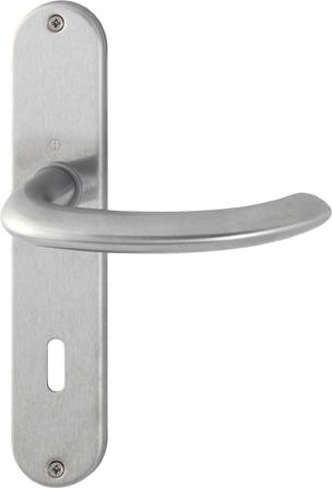 HOPPE-Edelstahl-Innentür-Langschild-Garnitur: geprüft nach DIN EN 1906 (Benutzungs-Kategorie 3), Türgriffe mit HOPPE-Schnellstift-Verbindung (mit HOPPE-Vollstift), Schilder sichtbar verschraubt.