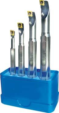 Ausführung: Bohrstange für Wendeschneidplatte 7° positiv, Schraubenklemmung, Werkzeugträger vernickelt. Lieferung Satz à 4 Stück, ohne Wendeschneidplatten, ohne Schraubendreher. Anwendung: Innendrehen.