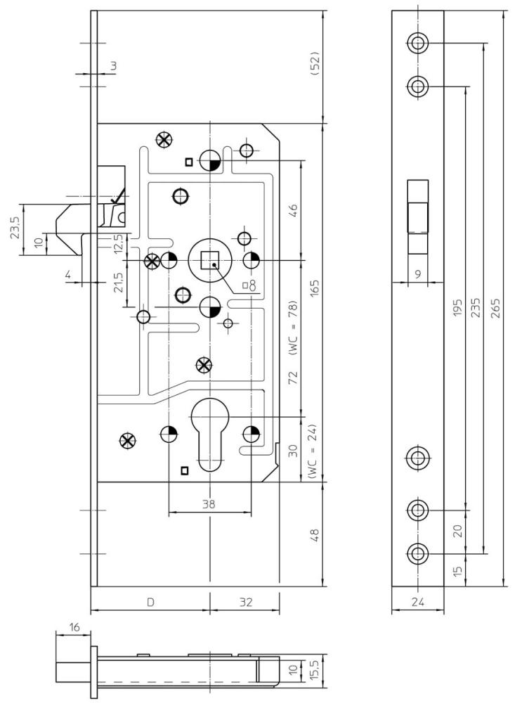 KFV ST-Einsteckschloss, PZ,E72,VK8,D65,20rd,DL/DR