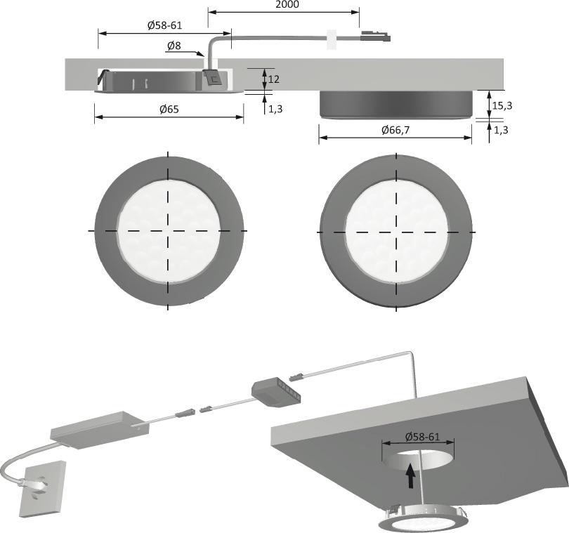 Einbaudurchmesser 5861 mm