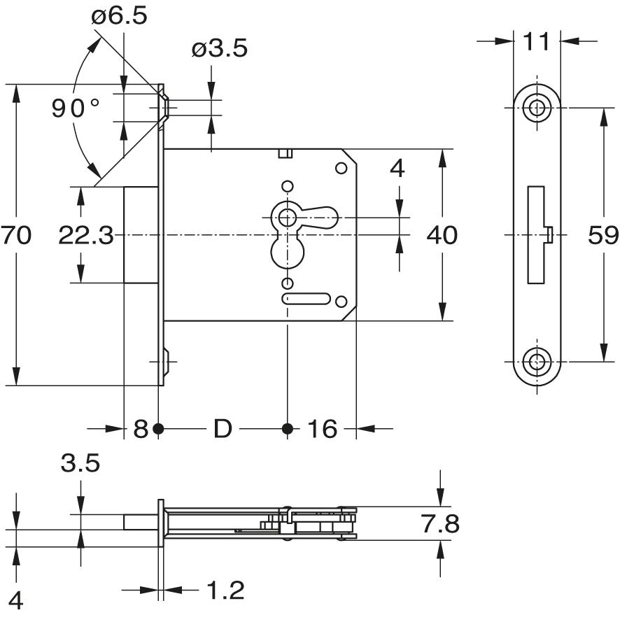 Produktinformationen "Möbeleinsteckschloss 1732:25mm links"