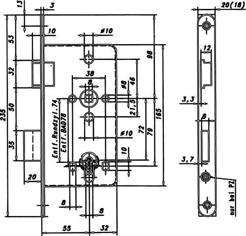 Produktinformationen "Zt-Einsteckschloss 8/55/ 72mm PZW DIN L 20mm rd.Ed"